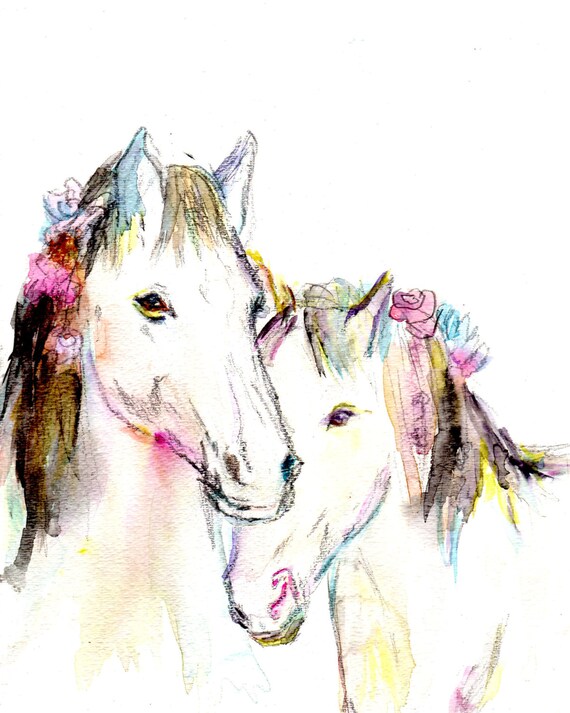 Paard aquarel afdrukken afdrukken van paard schilderij | Etsy